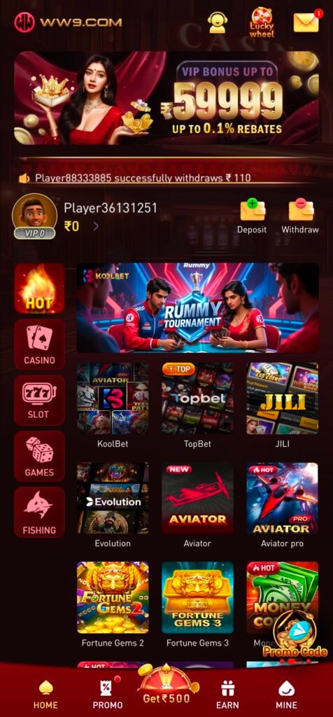 WW9Game APK ek modern online entertainment & skill-based gaming app hai jahan aap multiple exciting games enjoy kar sakte ho. Smooth interface, fast gameplay aur engaging features ke saath WW9Game users ko non-stop fun experience deta hai.Is app mein aapko milta hai:
